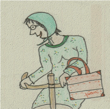 Mi vecina por el barrio va, con su bicicleta trabaja y pasea, tocando timbre casa por casa con su frase de siempre: ¿Usted necesita un mandado, pan, fideos o un helado? Ángela Suttín